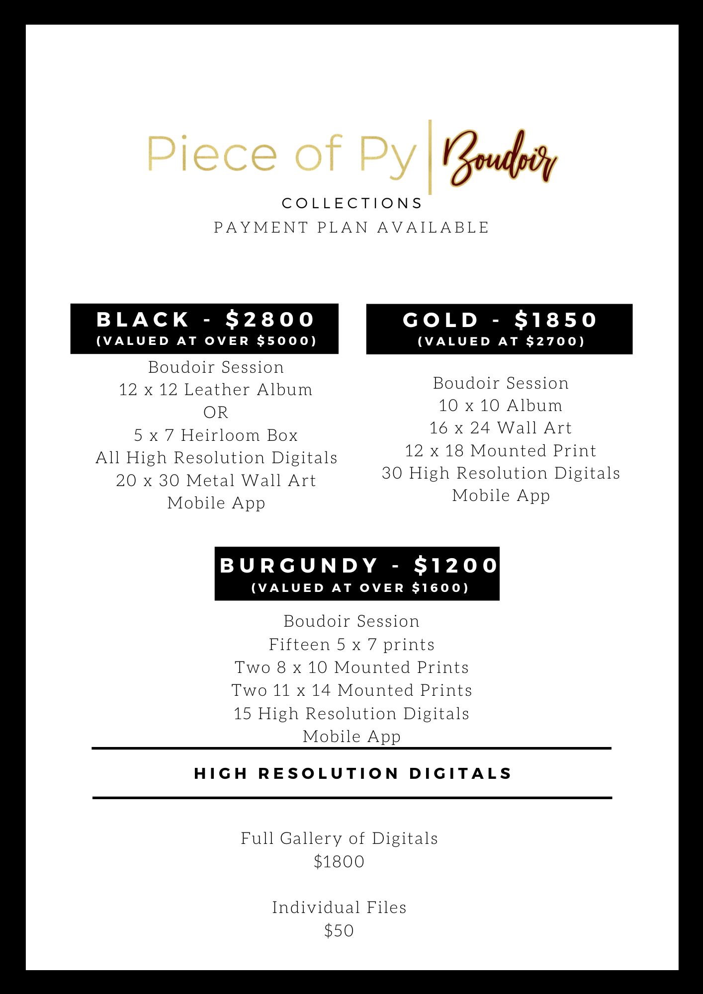 Most of my babes choose a collection because it gives them the best value and the most memories.